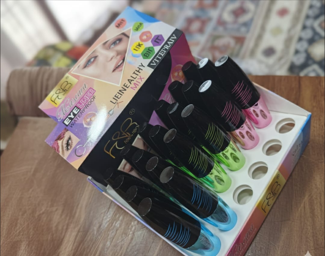 Elevate your makeup line with the F&B Healthy Mix Waterproof Eyeliner & Mascara Combo Display Box. This must-have set brings together intensely pigmented, long-lasting eyeliners and volume-boosting mascaras, all featuring a reliable waterproof formula designed to withstand humidity, sweat, and a busy day without smudging or fading. The collection is presented in a sleek, professional display box, offering a vibrant mix of essential colors for both subtle daytime definition and dramatic evening looks. It's the perfect choice for the modern consumer seeking natural beauty, professional quality, and dependable all-day wear.