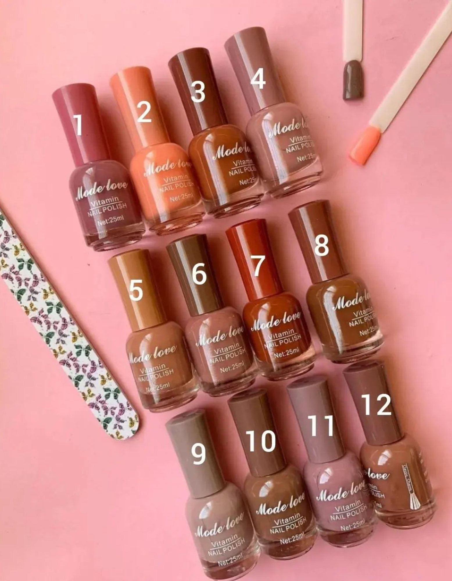 Elevate your manicure with Nail Polish by Mode Love, featuring a durable formula that ensures a smooth, high-shine finish. Designed for busy lifestyles, its quick-dry technology lets you achieve vibrant, salon-quality nails effortlessly. Suitable for everyday wear, this polish provides long-lasting color and a flawless appearance with each application.